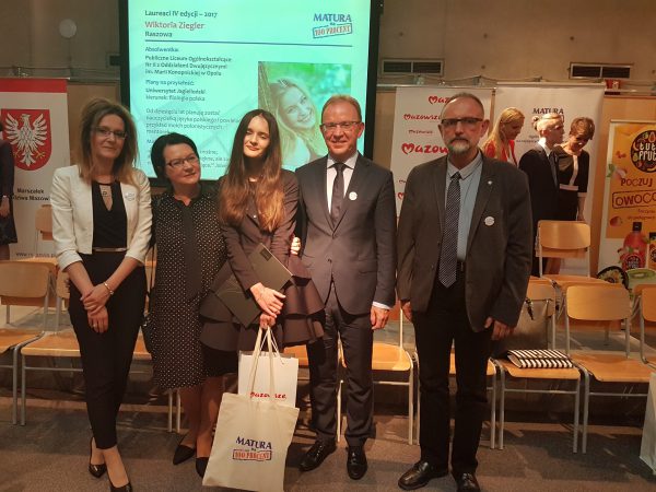 Ania uczęszczała do klasy matematyczno -biologiczno-chemicznej, której wychowawcą był pan Marek Skałuba. Na uroczystości w Warszawie, gdzie wręczono nagrody dla uczniów i wyróżnienia dla szkół nasze liceum reprezentował nauczyciel biologii Zbigniew Tabor. Wśród zaproszonych gości byli również niezwykle wzruszeni rodzice, wyrażający wdzięczność i uznanie dla nauczycieli, którzy mieli udział w tym sukcesie. Wyniki Ani można określić jako kosmiczne: na poziomie podstawowym 100% z matematyki, 91% z języka polskiego, 100% z języka angielskiego; na poziomie rozszerzonym: z matematyki 100%, z biologii 95%, z chemii 97%, z języka angielskiego 94%. Tak doskonałe wyniki pozwoliłyby na kształcenie w wybranej dowolnej uczelni na świecie ( spośród tegorocznych laureatów trzech wybrało uniwersytet w Oxfordzie, jedna w Cambridge, jedna w Berlinie). Ania zdecydowała się na Uniwersytet Jagielloński, gdzie będzie studiować na kierunku lekarskim. Z pewnością nie był to łatwy wybór, ponieważ Ania to osoba wszechstronnie uzdolniona, mająca rozliczne pasje. Do jej zainteresowań należą również dość nietypowe: tenis ziemny, choroby rzadkie, sztuka ( w szczególności secesja i impresjonizm), wulkany i zjawiska sejsmiczne. Studiując medycynę Ania ma szansę dołączyć do grona wybitnych lekarzy, naukowców, którzy znajdą sposoby leczenia wielu chorób, wobec których współczesna medycyna jest bezradna. Sukces Ani to głównie jej zasługa, także rodziców, ale również nauczycieli, którzy swoją pasją dzielili się z Anią. Gratulując jej, cieszymy się, że, jako szkoła, nie zgubiliśmy talentu i udowodniliśmy, że nie trzeba wyjeżdżać z naszego miasta do Rzeszowa czy Krakowa, aby znaleźć się wśród najlepszych z najlepszych.