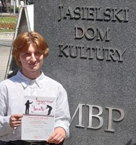 Z przyjemnością informujemy, że Jakub Borys z klasy 3Dg po raz kolejny został laureatem XXVII Ogólnopolskiego Konkursu Literackiej Twórczości Dzieci i Młodzieży Liryczne Jasło. Gratulujemy! Szczegółowe wyniki Konkursu zostaną przedstawione podczas finałowej gali 24 maja 2022 r. Finał Konkursu będzie transmitowany na żywo na FB Biblioteki LINK.