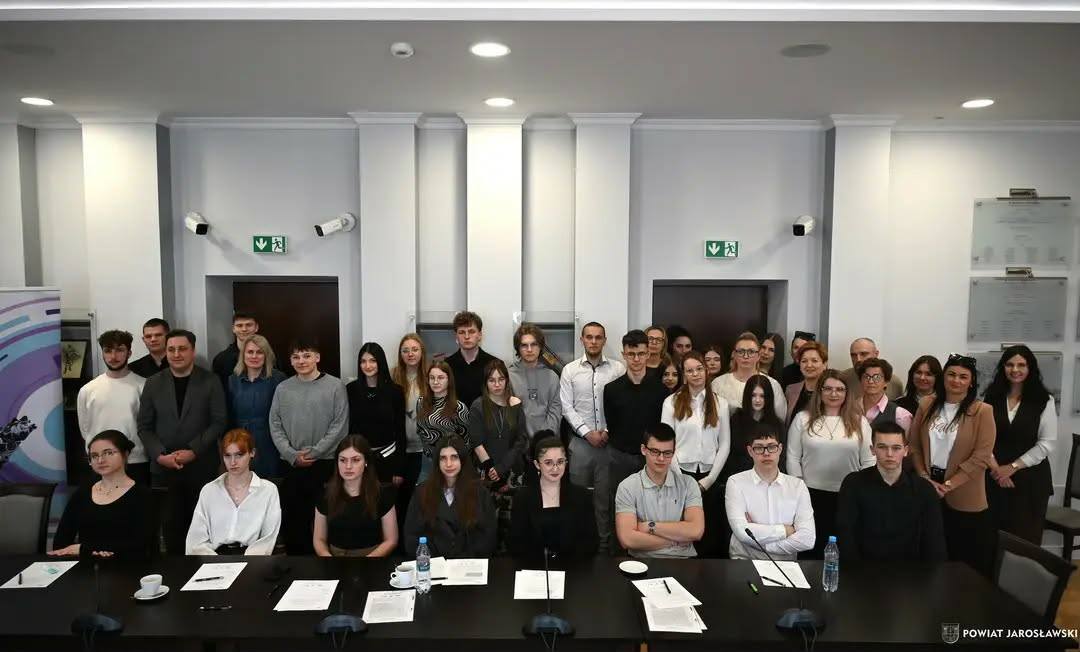 10 marca 2026 roku w Starostwie Powiatowym w Jarosławiu odbyło się spotkanie w ramach Forum Liderów Młodzieży Powiatu Jarosławskiego. Naszą szkołę reprezentowali przedstawiciele Samorządu Uczniowskiego – Mikołaj Cioch i Wiktoria Cach – wraz z opiekunem, panem Robertem Giecem. Spotkanie zostało zorganizowane we współpracy z Fundacją Misji Obywatelskiej, która skupia liderów szkół średnich z powiatu jarosławskiego. Było ono okazją do rozmów na temat aktywności obywatelskiej młodzieży oraz do wspólnego poszukiwania pomysłów na działania podejmowane na rzecz naszego powiatu. Spotkanie stworzyło przestrzeń do wymiany doświadczeń oraz pomysłów na działania, które mogą zostać zrealizowane w przyszłości. Podkreślono rolę edukacji obywatelskiej w kształtowaniu postaw społecznych i odpowiedzialności za sprawy lokalne. Udział w Forum był cennym doświadczeniem, które pozwoliło na nawiązanie nowych kontaktów oraz zdobycie inspiracji do podejmowania kolejnych inicjatyw w naszej szkole.