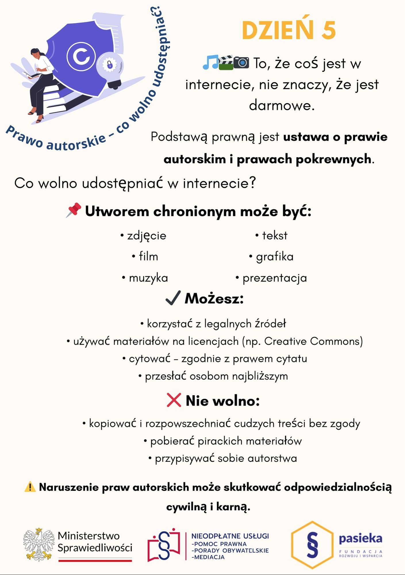 W związku z obchodami Dnia Bezpiecznego Internetu, przypadającego w dniu 10 lutego, udostępniamy materiały edukacyjne przygotowane w ramach kampanii społecznej „Tydzień Praw Cyfrowych”. Kampania ma charakter informacyjno-edukacyjny i jest skierowana do mieszkańców JST, w tym młodzieży (13+). Jej celem jest podniesienie świadomości prawnej i bezpieczeństwa w środowisku cyfrowym. Termin kampanii: 9–13 lutego.