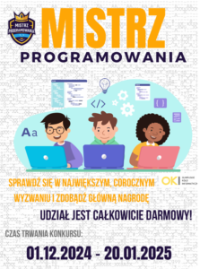 Zapraszamy do całkowicie bezpłatnego, ogólnopolskiego, corocznego konkursu Mistrz Programowania 2025: LINK