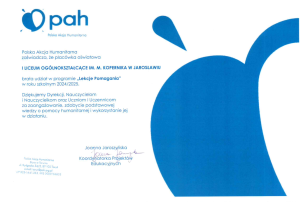 W roku szkolnym 2024/2025 klasy 2C i 2G uczestniczyły w programie Polskiej Akcji Humanitarnej „Lekcje pomagania”. W ramach projektu odbyły się warsztaty oraz zbiórka pieniędzy na rzecz walki z ubóstwem. Celem zajęć było propagowanie idei mądrego pomagania we współczesnym świecie. Program wprowadził młodzież w zagadnienia odpowiedzialnego humanitaryzmu oraz pomocy ludziom bez względu na pochodzenie. Podczas realizacji projektu uczniowie dowiedzieli się, czym jest mądra pomoc, jak reagować na kryzysy humanitarne spowodowane przez konflikty zbrojne lub katastrofy naturalne, oraz zapoznali się z realistycznymi i stosowanymi w praktyce pomysłami na działania. Realizatorką programu w naszej szkole była pani Joanna Szczepanek.