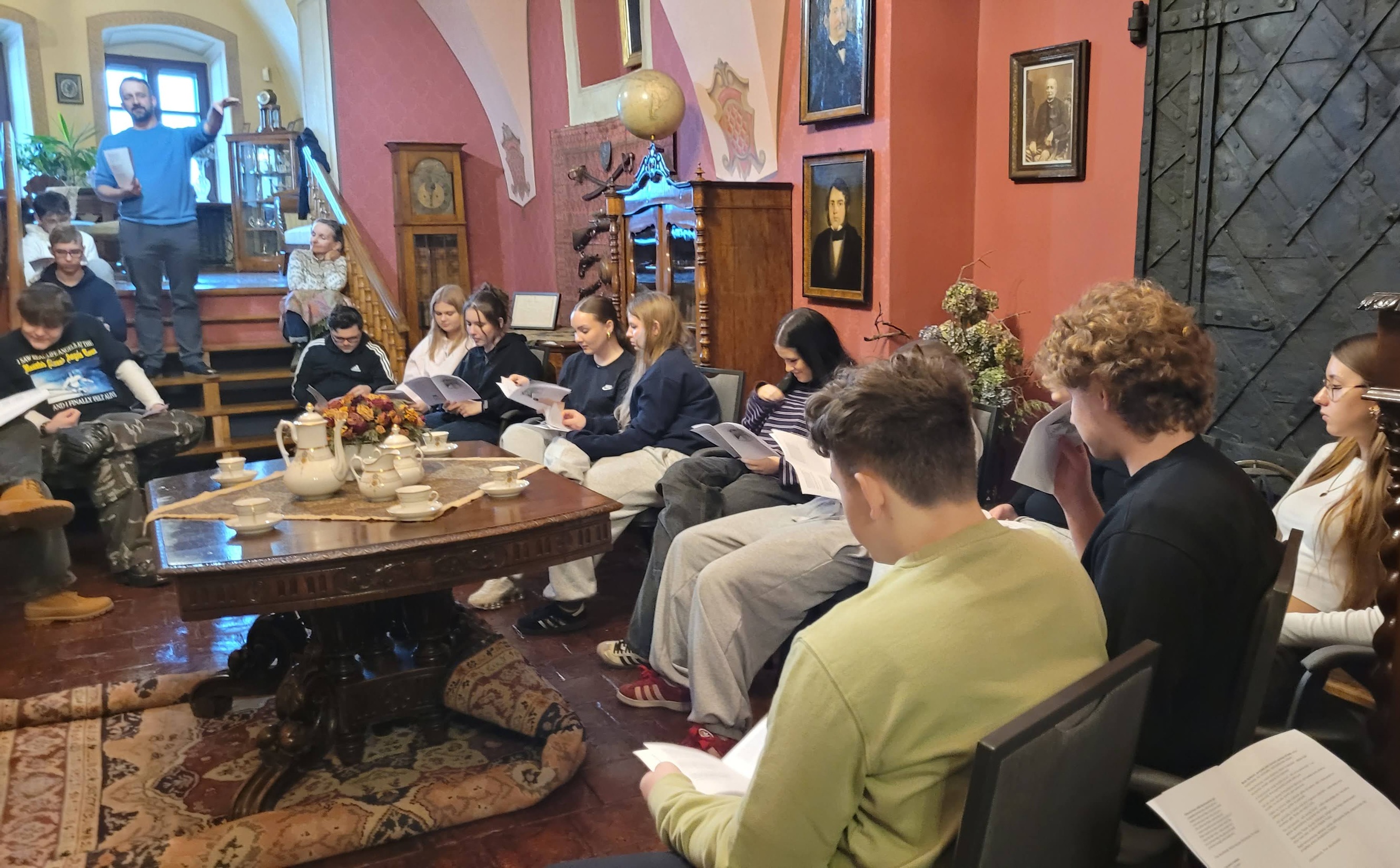 We wtorek 2 grudnia 2025 roku klasa 3C wzięła udział w nietypowych zajęciach muzealnych w Kamienicy Orsettich. Zamiast tradycyjnego zwiedzania i wykładu, prowadzący – pan Piotr Kaplita zaprosił nas do wspólnego śpiewania pieśni z okresu Powstania Styczniowego, głównie pochodzących z terenów, na których dziś mieszkamy. W przerwach opowiadał o okolicznościach…