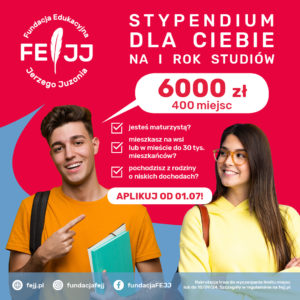 Sprawdź, czy spełniasz kryteria na stronie FEJJ.pl i nie wahaj się złożyć wniosku o stypendium. Zgarnij wsparcie finansowe na pierwszy rok studiów. Weź udział w programie – aplikuj od 1 lipca 2024 i spełnij swoje marzenia!