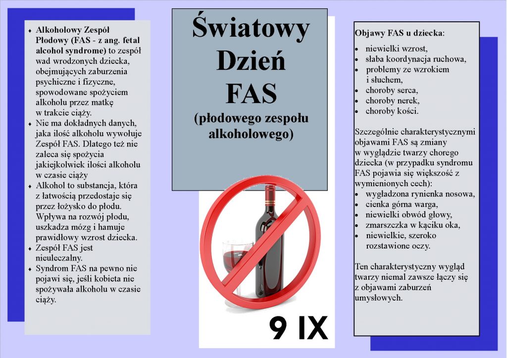 Światowy dzień FAS zwany też Dniem Świadomości FAS jest obchodzony corocznie na całym świecie 9 września (09.09 – zestawienie dziewiątek pochodzi od dziewięciu miesięcy ciąży).