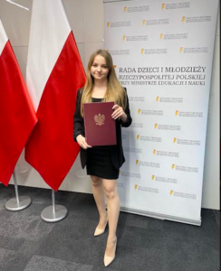 15 lutego br. dyrektor generalny w MEiN Sławomir Adamiec w imieniu ministra Przemysława Czarnka wręczył powołania nowym członkom Rady Dzieci i Młodzieży RP przy Ministrze Edukacji i Nauki. Nominacje otrzymało 6 osób. Rada jest ciałem opiniodawczo-doradczym ministra w kwestiach dzieci i młodzieży. Wśród powołanych osób znalazła się Martyna Łuszczek (uczennica klasy 4d). Podczas uroczystości dyrektor generalny podziękował przedstawicielom Rady Dzieci i Młodzieży za dotychczasową pracę.