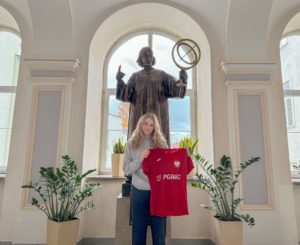 Miło nam poinformować o sukcesach sportowych Hani Szczotki, uczennicy klasy 3E. Hania aktualnie reprezentuje barwy klubu Jarosławskiego Handball JKS Jarosław w superlidze, czyli w najwyższej lidze w Polsce. Zdobyła kilka bramek w ubiegłych spotkaniach ligowych, a jak na siedemnastolatkę jest to duże osiągnięcie. Jako młodziczka osiągnęła wiele sukcesów: jeździła na różne zgrupowania, dostawała nagrody w kategorii najlepsze zawodniczki turnieju. Oprócz superligi Hania gra w pierwszej lidze, gdzie z drużyną w poprzednich latach osiągnęła dużo sukcesów. Aktualnie została powołana do Kardy Polski Juniorek, gdzie w dniach 25-26 listopada br. zagra mecze z reprezentacją Chorwacji w Zagrzebiu.
