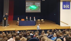 W spotkaniu inaugurującym tegoroczną edycję spotkań wzięły udział klasy I C – humanistyczno – prawna i II B – dziennikarska. Uczniowie z uwagą wysłuchali wykładu Pani Dyrektor Instytutu Polonistyki i Dziennikarstwa UR dr hab. prof. UR Agnieszki Myszki pt. „Podkarpacie w języku i kulturze”. Pan dr hab. prof. UR Witold Nowak reprezentujący Instytut Historii wygłosił zaś ciekawą prelekcję nt. ”Wielokulturowości w perspektywie filozofii”.