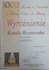 W dniu 9 maja 2022 r. w Jarosławskim Ośrodku Kultury i Sztuki odbył się Koncert laureatów XXXI Konkursu Piosenki „O ZŁOTY KLUCZ DO SŁAWY” oraz ogłoszenie wyników i rozdanie nagród.